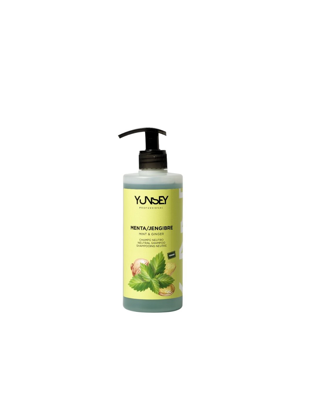 Champú Menta & Jengibre 400 ml Yunsey. Champús formulados con pH neutro, suaves y delicados que eliminan eficazmente los residuos, limpiando el cabello y el cuero cabelludo en profundidad. Formulaciones sutiles de uso frecuente que brindan una placentera experiencia sensorial… Disfrutarás de un perfume excepcional durante la aplicación y en el cabello. Champú profesional con pH neutro que proporciona una sensación exquisita; es suave, ligero y altamente eficaz para ofrecer una limpieza integral del cabello y del cuero cabelludo. Adicionalmente, este champú cuenta con un aroma espectacular que aportará a tu cabello fortaleza, brillo y facilitará su manejo.
