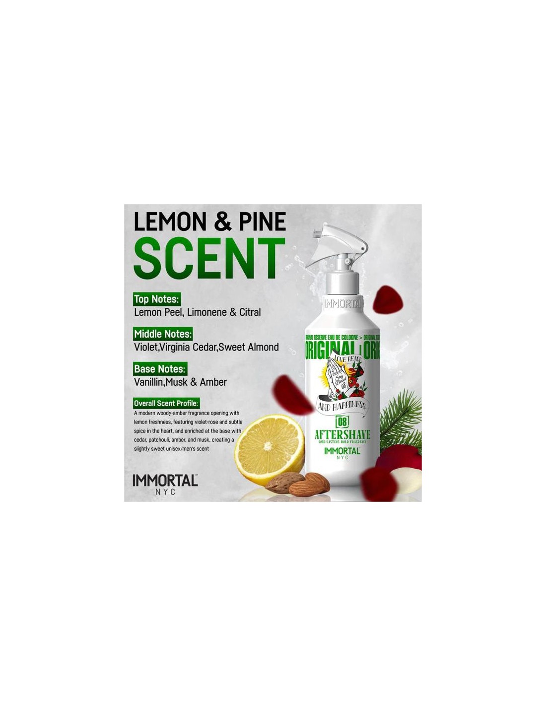 Con Immortal NYC Stay Blessed Aftershave 08, no solo te afeitas, sino que también te regalas a ti mismo un ritual de cuidado que transforma tu rutina diaria en un momento de lujo y atención personal. ¡Descubre la diferencia y siente cómo tu piel se renueva!