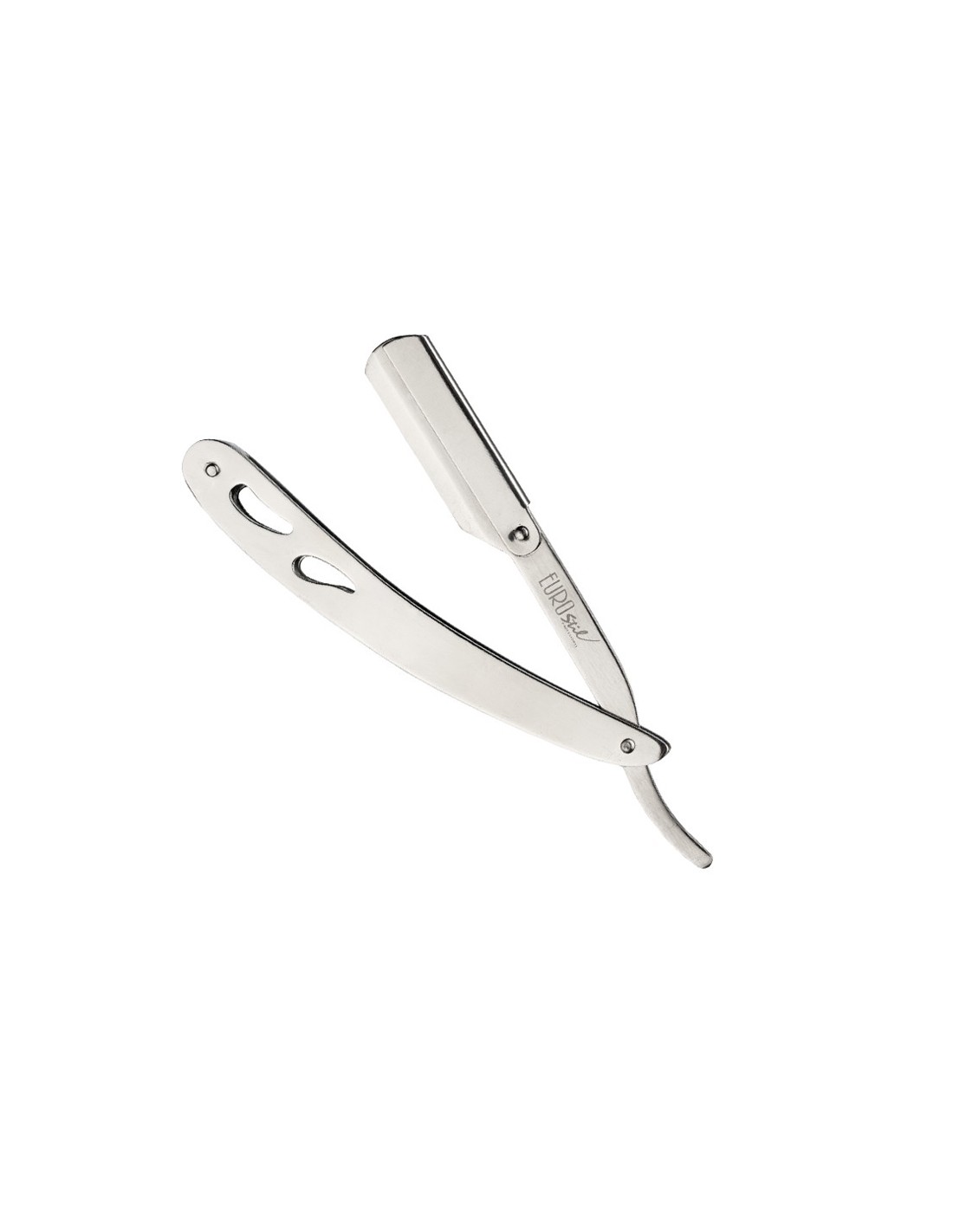 Navaja afeitar mango y cuerpo metálico de hoja cambiable. Media Hoja. Apertura en forma de abanico.
