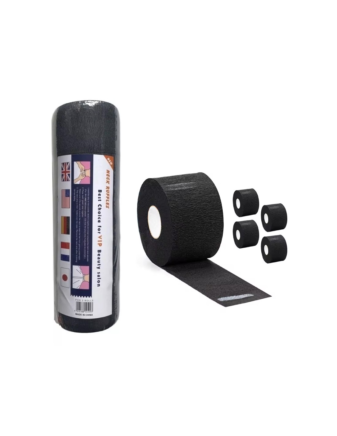 Papel de cuello Color Negro desechable, protege el cuello de tus clientes con un papel resistente especial para barberías. Precortado, de tacto suave, en rollos de 100 servicios