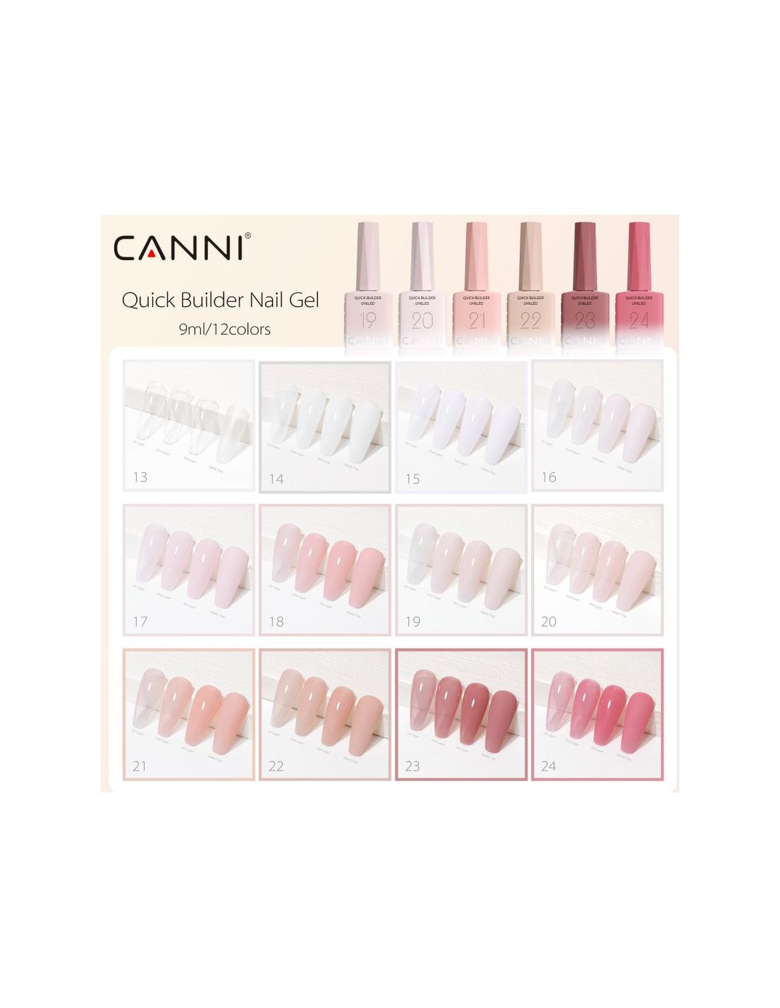 Quick Builder Hema Tpo Free 9 ml Canni Gel constructor rápido CANNI El Builder Gel, un producto para mejorar las uñas, es un gel espeso y viscoso que se aplica sobre la uña natural para protegerla. No es un producto para el cuidado de las uñas, sino que ayuda a construirlas y fortalecerlas para evitar que se rompan, a la vez que deja un acabado duradero y un aspecto natural.