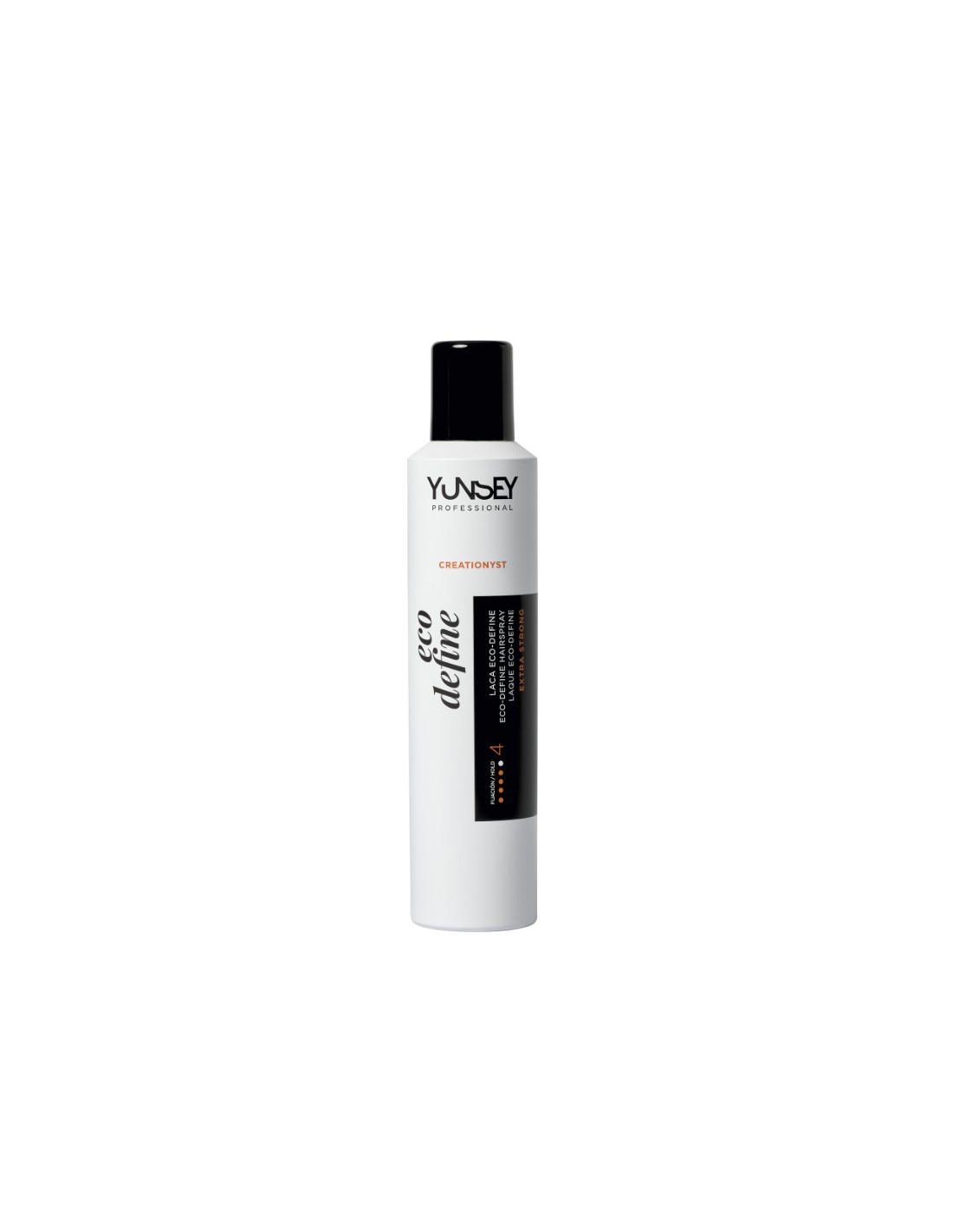 Laca Extrafuerte Eco Define Creationyst 300 ml Yunsey. Laca ecológica sin gas ni propelentes, que aporta una fijación extrafuerte al cabello para fijar y definir todo tipo de peinados.