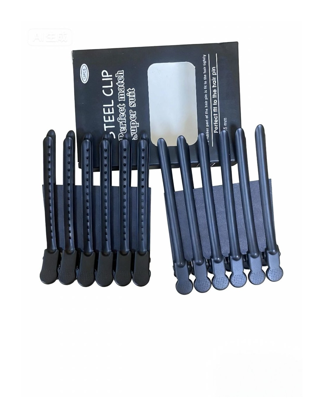 Pinza Metalica Negra Peluquería 12 unidades de 95 mm de largo. Logré un corte impecable y un peinado preciso con el juego de pinzas profesionales. Diseñadas para peluqueros, estas pinzas de cocodrilo ofrecen un agarre firme y antideslizante.