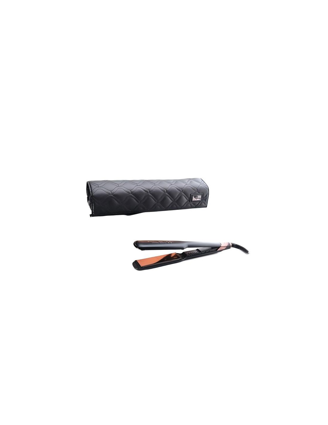 Plancha Rose Gold PC 6.4 L Lim Hair. La nueva plancha LIM HAIR PC 6.4 L ROSE GOLD TI incorpora placas con tecnología ROSE GOLD TITANIUM que las hace superdeslizantes. Además no generan efecto Frizz y dejan el cabello muy brillante, consiguiendo moldeados más duraderos. Destaca esta plancha por su SLIM DESIGN ya que es muy delgada haciéndola muy práctica para el trabajo y muy útil para moldeados. Al mismo tiempo tiene un ancho especial, entre las tradicionalmente anchas y las estándar, sus 38 mm de ancho le confiere mayor capacidad de trabajo y capacidad de realizar ondas más anchas y naturales. Además es 20 mm más larga del estándar, llegando a los 110 mm de largo. La temperatura es regulable hasta 230ºC con luces led, para adaptarse a cualquier tipo de cabello. Se presenta un bonito cofre con un práctico neceser térmico que además hace las funciones de tapete de protección de la mesa durante su uso. Nuevas tecnologías para una plancha profesional muy completa.