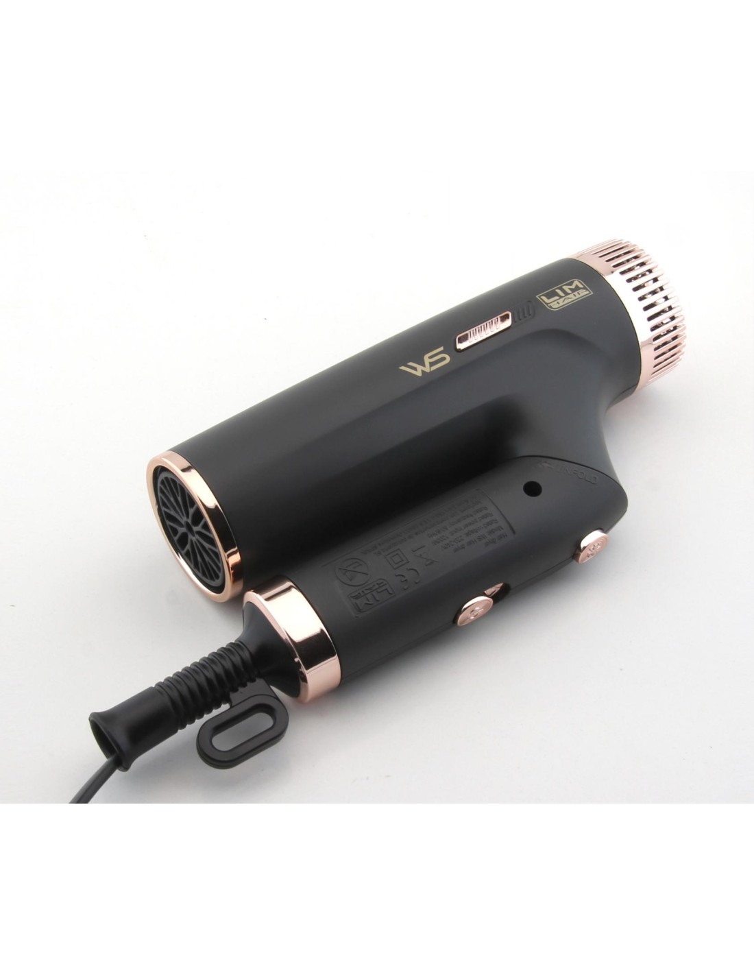 Secador Compacto Plegable WS Black Rose Lim Hair Descubre el nuevo LIM HAIR WS, un secador de viaje con un diseño en forma de T, siguiendo la línea de los últimos modelos digitales.
